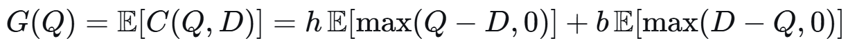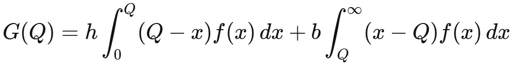 单周期,随机需求 D(概率密度函数设为 f(x)),单位取货成本 b,持有成本 h。求订货量 Q*。