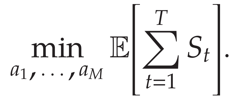 目标:找到一个最优的订购量序列 (a_1, a_2, ..., a_M),以最小化 T 时间段的总期望成本。