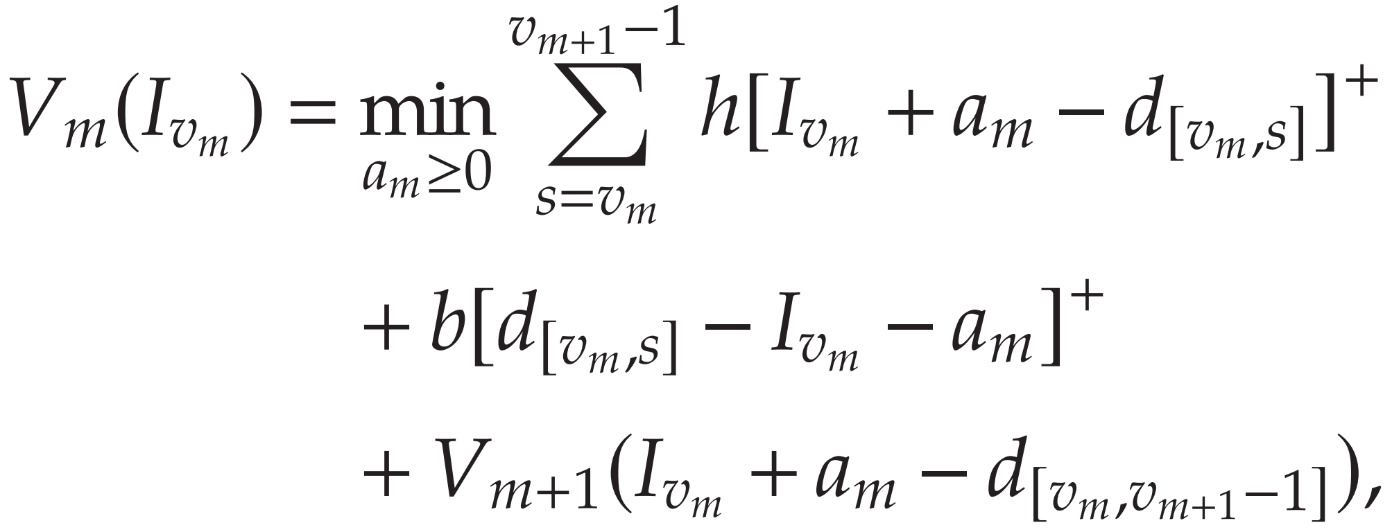 在 v_m 初始有 I 的库存,则后续成本递归的拆成:v_m+1 之后的成本 + [v_m,v_m+1]之间每一天的成本