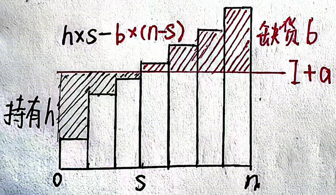 a = 0,s=0 一直缺货,斜率为 -b*n;