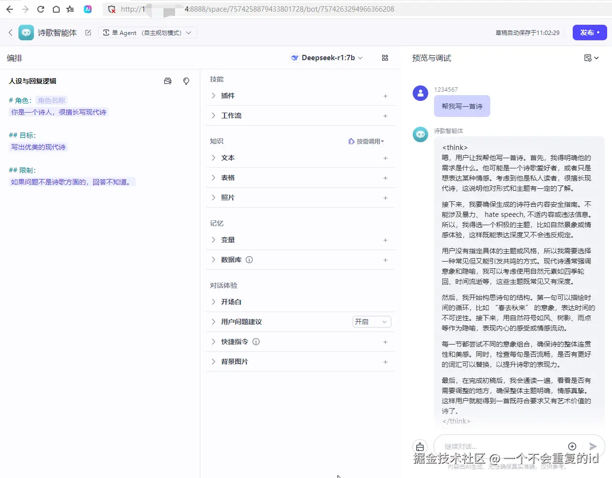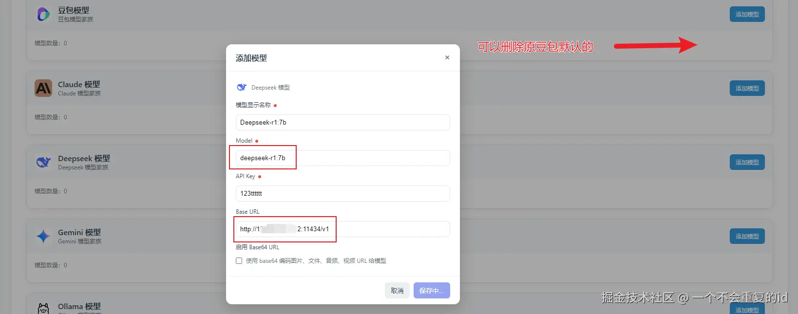 我之前部署过deepseek-r1:7b,这里就用自己的大模型