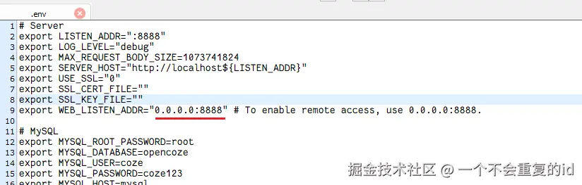 修改 coze-studio/docker.env 环境文件,可以把 127.0.0.1:8888 改为 0.0.0.0::8888 这样外网也能访问了