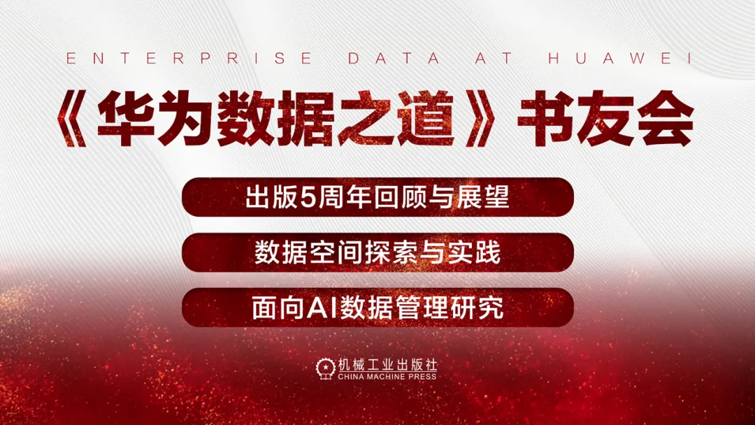 时光荏苒,凝聚华为公司数据管理经验与智慧的《华为数据之道》自2020年由机械工业出版社出版以来,已走过五载征程。为庆祝该书发行5周年并见证华为公司新作《数据空间探索与实践》的重磅上市,机械工业出版社特筹备闭门研讨会,邀请这两本书的核心作者、华为和多个行业的权威专家,以及铁杆读者和媒体界的朋友们齐聚一堂,共同回溯数据治理领域的变化和挑战,解码AI时代数据治理的新使命与新机遇。