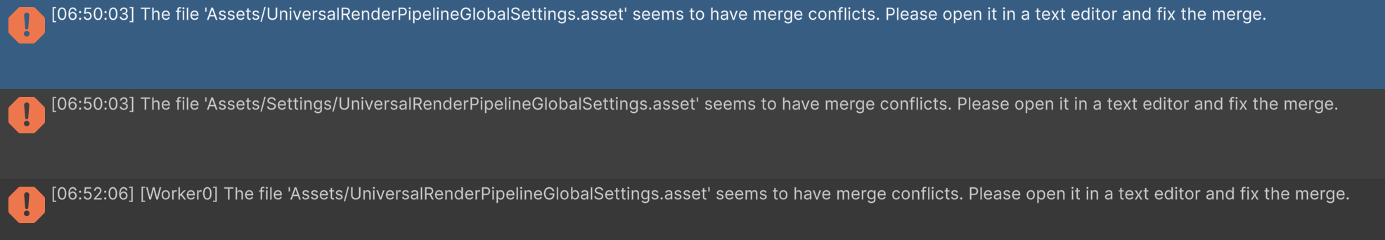 The file 'Assets/UniversalRenderPipelineGlobalSettings.asset' seems to have merge conflicts. Please open it in a text editor and fix the merge.