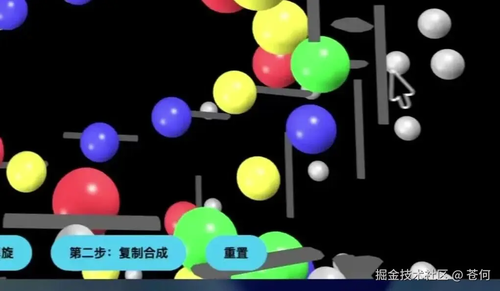 提示词:用 HTML 生成 3D 演示动画,像中学生演示DNA双螺旋的复制过程