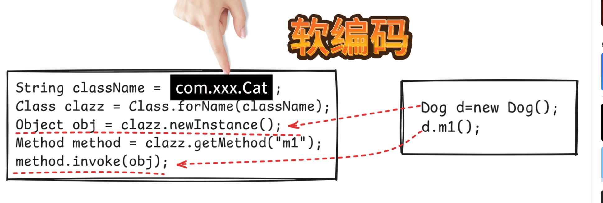 运行时动态加载 ,写一次框架,跑所有类 →Spring IoC、MyBatis Mapper 都这么活。
