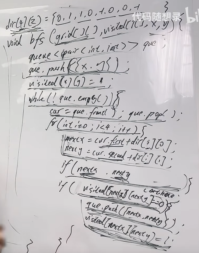 push入队,再标记visited(防止重复入队)。 - 每次处理节点时,先