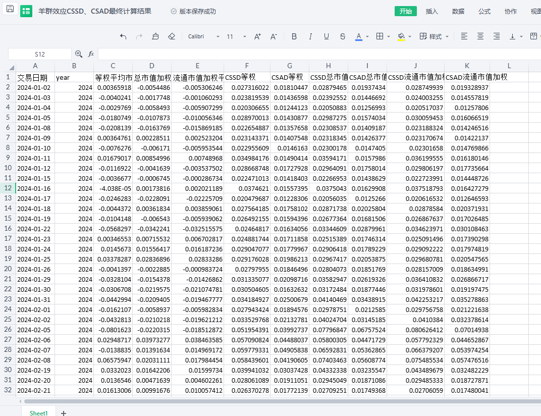 (2)CSAD:横截面收益绝对偏差(常用),参考C刊《金融研究》郑挺国(2021)老师的研究构建
