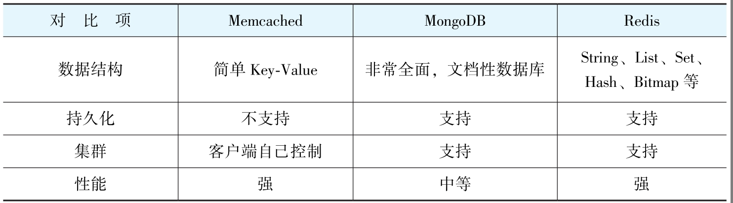 目前比较流行的缓存中间件Memcached、MongoDB、Redis进行简单对比