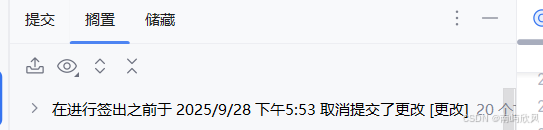 - 方案 2:暂存到 "储藏区"(Stash) (临时保存,后续回滚)适合 "修改未完成,不想提交但需要切分支" 的场景
