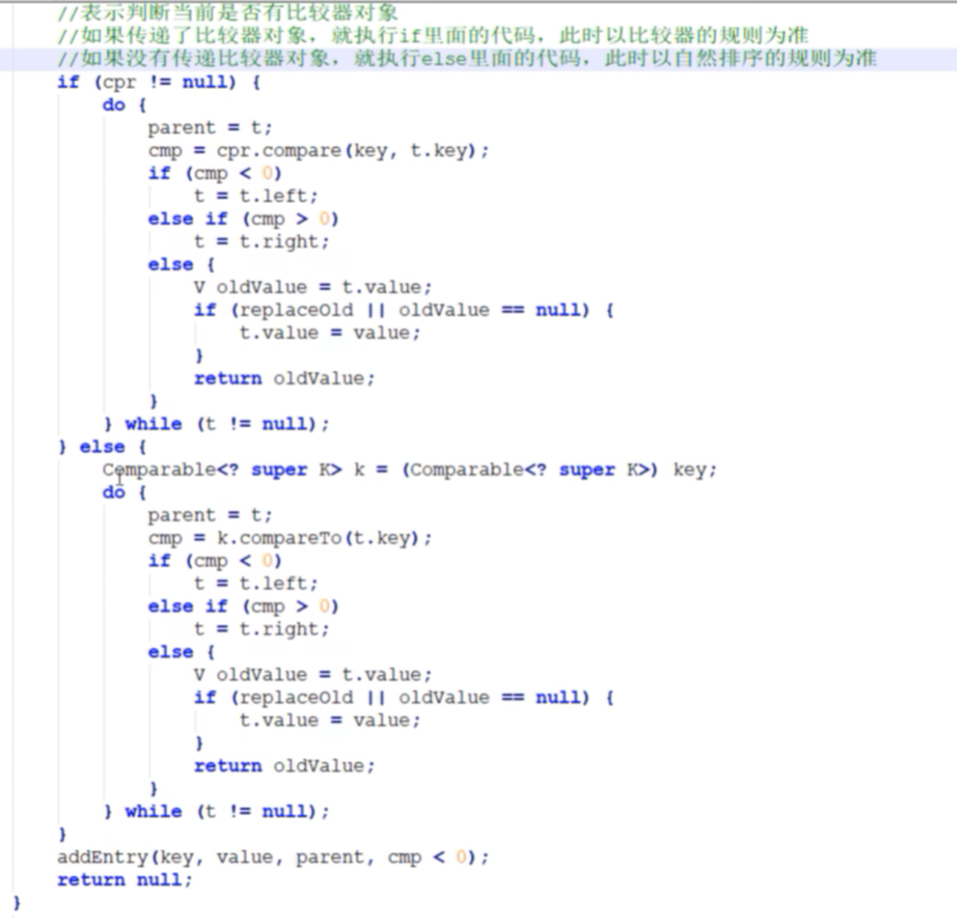 调用compareTo方法调用根节点t.key的键值跟 当前k添加的节点的 键 按照cmp 比较器的方式进行比较。