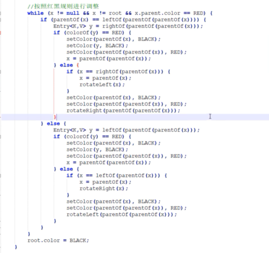 fixAfterInsertion(e): 就是按照红黑树的规则进行调整。