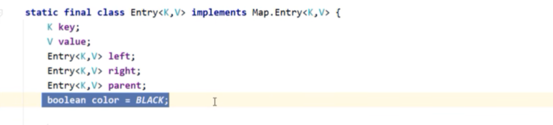 每一个Entry对象内部的属性有:key(键)、value(值)、left(左子节点地址值)、right(右子节点地址值)、color(该节点的颜色)。