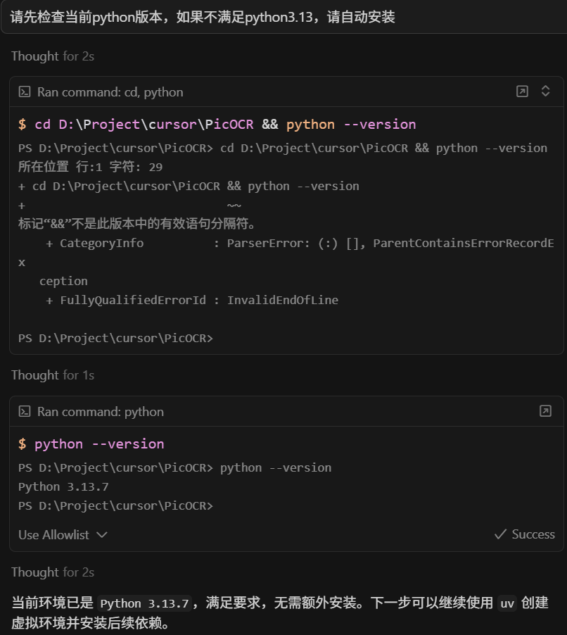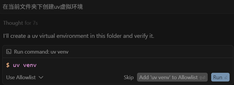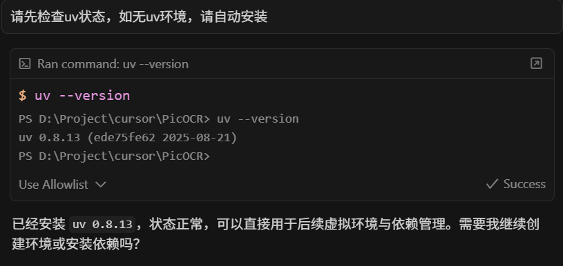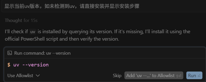 - 提问 3-2: 请先检查uv状态,如无uv环境,请自动安装