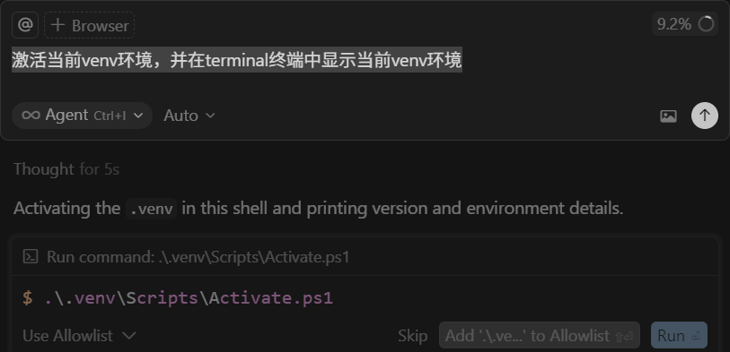 | 提问:激活当前venv环境,并在terminal终端中显示当前venv环境 ||