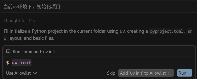 - 提问 4-1:请初始化uv项目