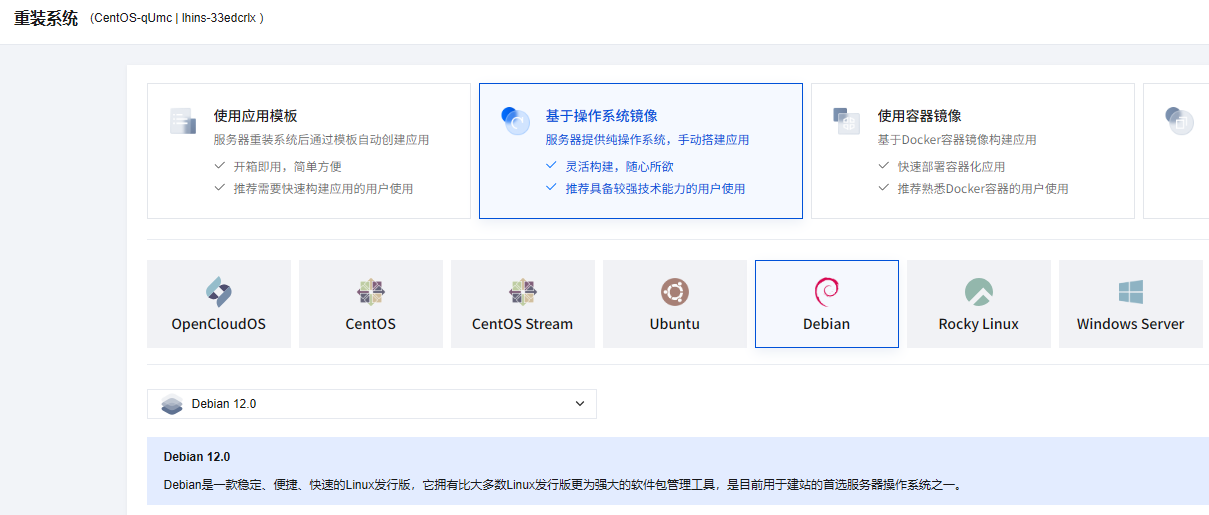 我尝试了CentOS7、CentOS9,意外发现对Docker的支持都不太好,镜像源很多都连不上,还有docker-compose的版本问题等等,最终还是重装为Debian才顺利。