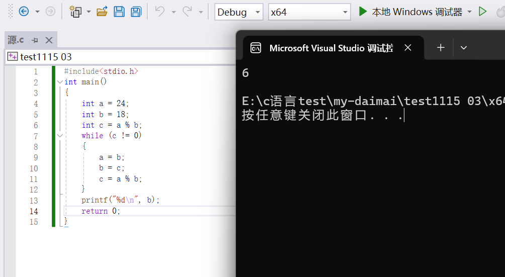 进一步优化(避免多次减法):两个数的最大公约数,等于其中较小数与两数相除余数的最大公约数。