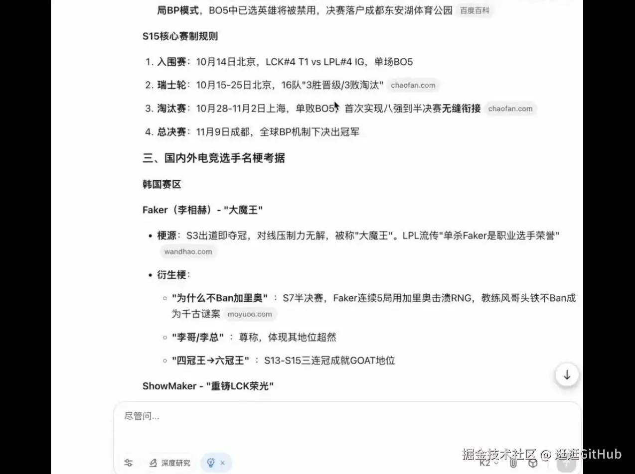 因为 Kimi K2 Thinking 可以在海量信息中刨根问地,简直可以作为追热点事件的利器。