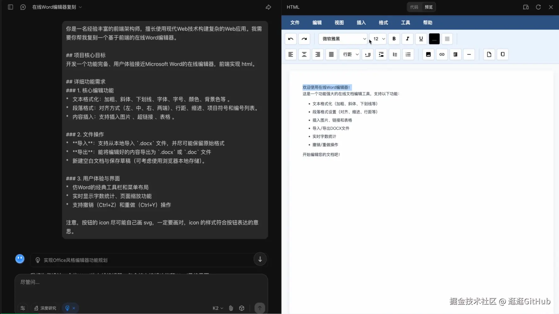 复刻一个简单的 Word 编辑器Kimi K2 Thinking 模型的 Coding 能力也增强了,测试了它们的官方 Case 能否复现:复刻一个简单的 Word 编辑器。
