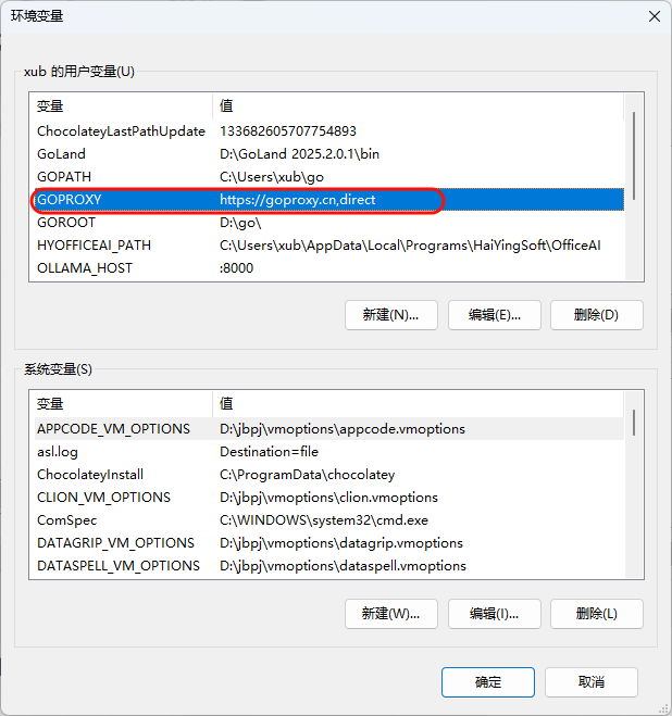 | GONOPROXY | 不走代理直接下载的域名(通常用于公司内部私有模块) | 例如:gitlab.company.com,*.corp.example.com 或留空 |