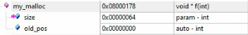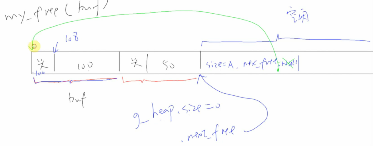 my_free(buf),buf是 100 字节用户数据的首地址; - 计算头部地址: