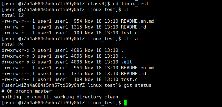 此时才算加入了本地仓库,而且此时git status也没有新的内容