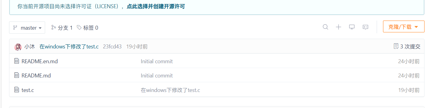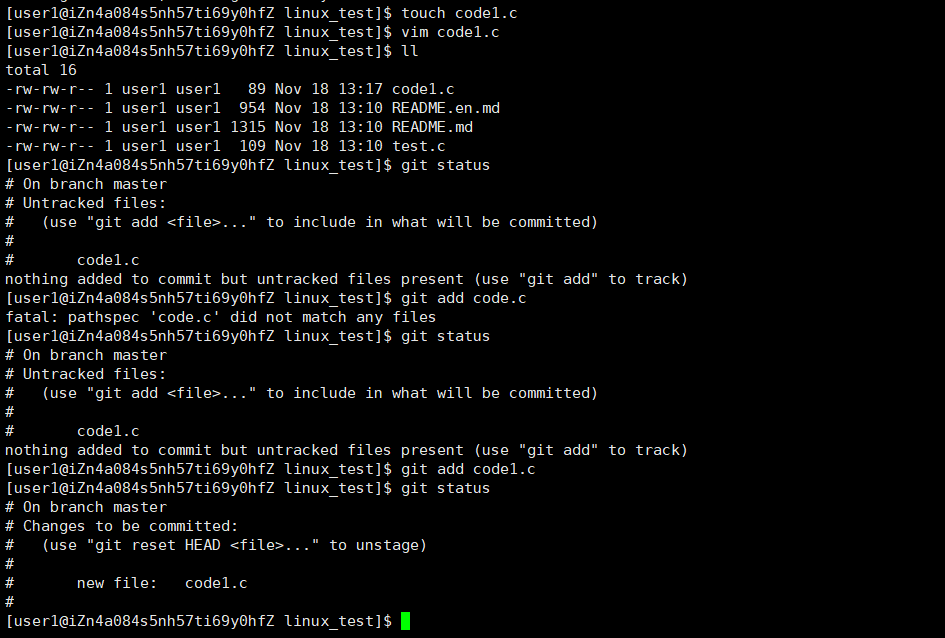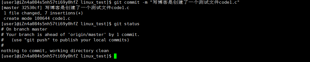 这里我们创建了一个code1.c并且加入到了仓库里面,吗??答案是并没有 ,其实只是加到了一个临时仓库里面,下面我们要将临时仓库里面的内容加到本地仓库里面
