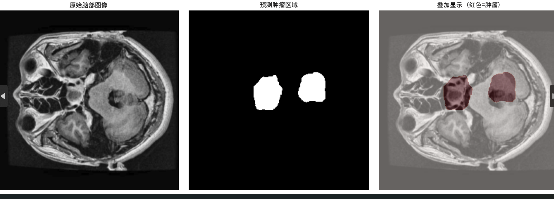可调的 transformer_embed_dim/num_heads/num_layers 赋予模型更高表达力,能在全局范围捕获肿瘤的长距离依赖;纯 U-Net 仅依赖局部卷积与 skip 连接,感受野受限。