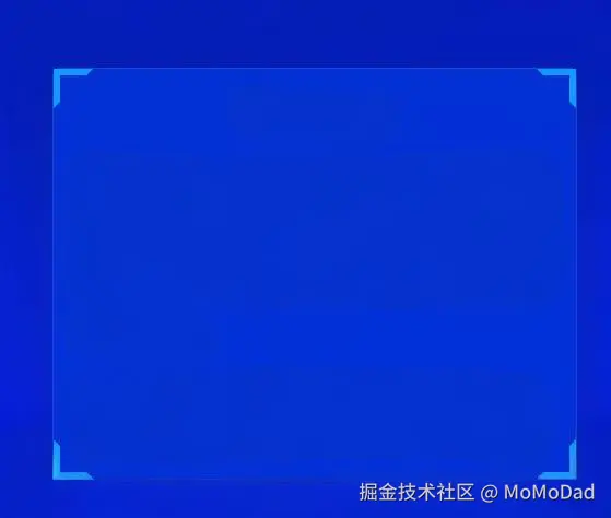 先看最终实现效果:容器四个角落呈现蓝色(#0f9cfb)立体边框,边角线条利落,自带光影层次感,没有复杂的 SVG 或图片依赖。