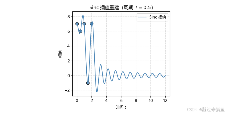 """在任意实数 t 处返回 sinc 插值结果"""