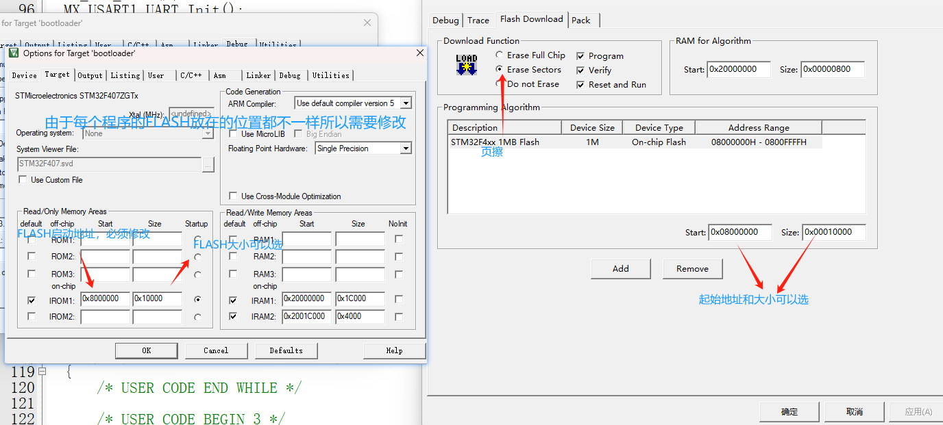 ● boot程序+app程序、FLASH存储分部及分区、boot区/参数区/运行区/A存储区/B存储区。