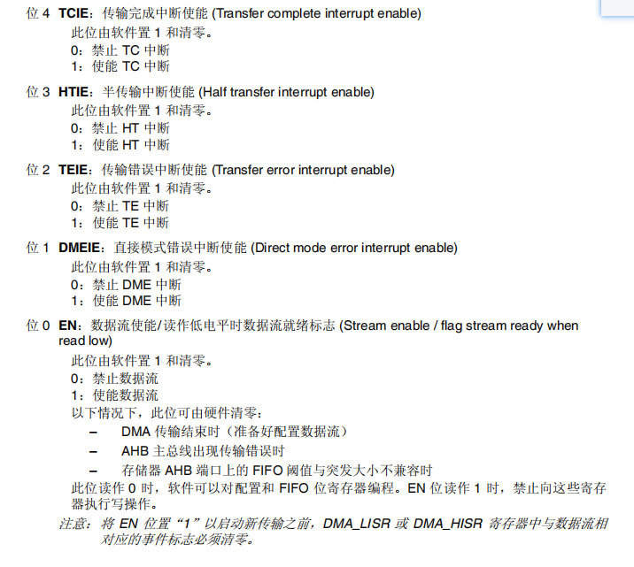 hdma->Instance->CR &= ~(DMA_IT_TC | DMA_IT_TE | DMA_IT_DME);