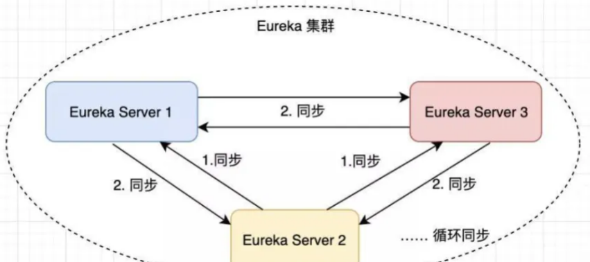 - 服务注册信息的复制: 当一个服务实例向Eureka Server注册时,每个Eureka Server实例都会复制其他实例的注册信息,以保持数据的一致性。当某个Eureka Server实例发生故障时,其他实例可以接管其工作,保证整个系统的正常运行。