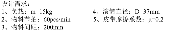 物料节拍时60pcs/min,一秒钟走1个,之间间隔200mm,则速度为0.2m/s