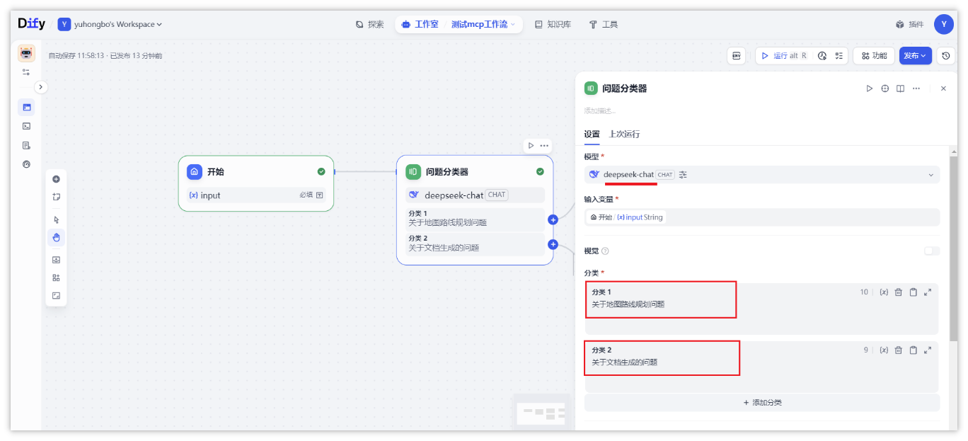 - 问题分类(Question Classifier):通过定义分类描述,LLM 能够根据用户输入选择与之相匹配的分类。