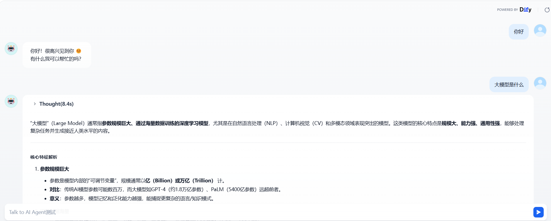 - Agent:能够分解任务、推理思考、调用工具的对话式智能助手