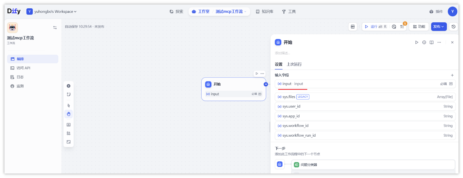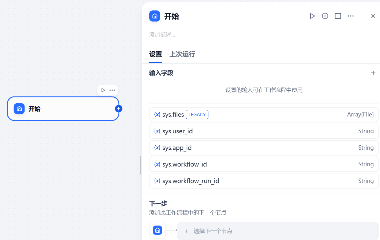 - 开始(Start):定义一个 workflow 流程启动的初始参数。