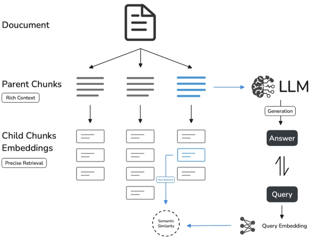 整个流程实现了开始、文档内容解析、数据处理和、LLM 生成和结束等阶段构成,处理流程如下所示: