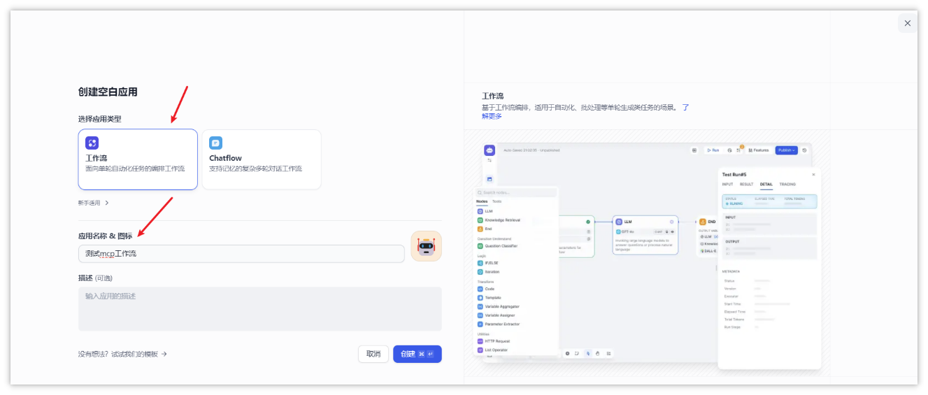 - 工作流:适用于自动化、批处理等单轮生成类任务的场景的应用编排方式