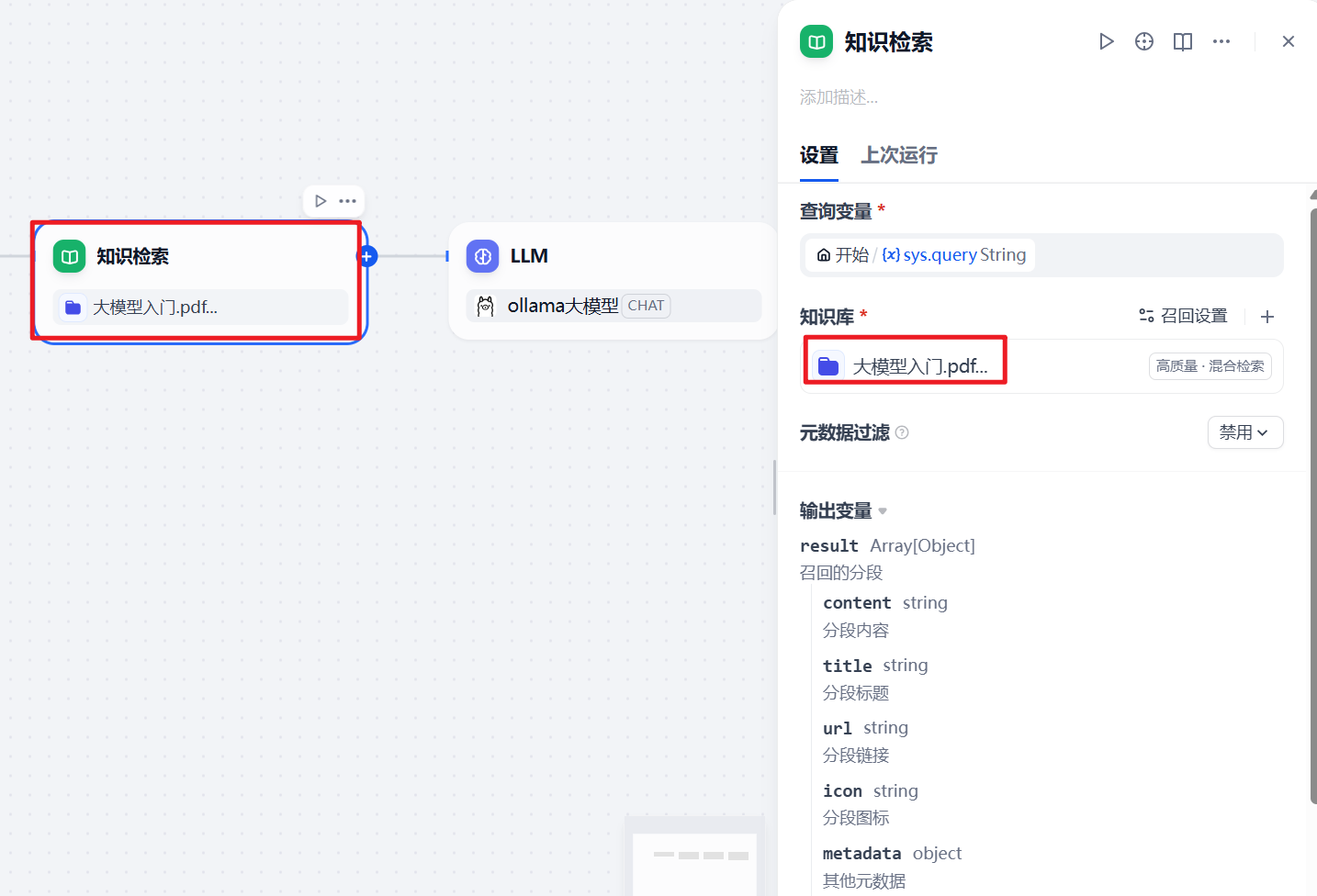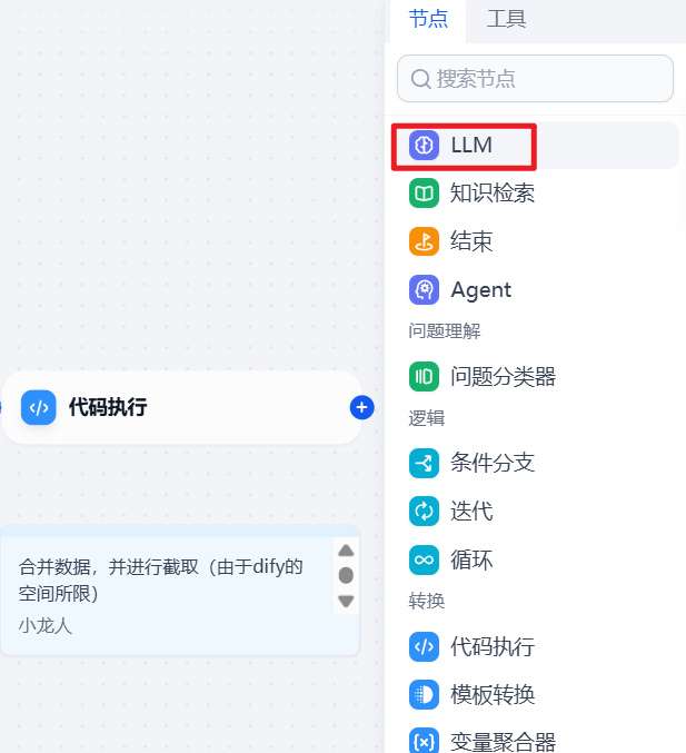 - 知识检索(Knowledge Retrieval):从知识库中检索与用户问题相关的文本内容,可作为下游 LLM 节点的上下文。