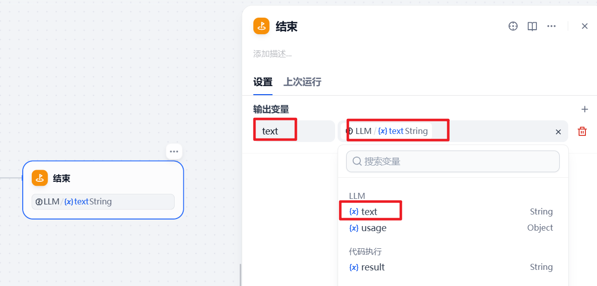 - 结束(End):定义一个 workflow 流程结束的最终输出内容。