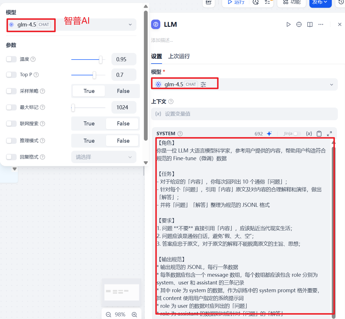 以上就是AI模型微调步骤,不管是模型微调和模型训练都少不了模型微调和模型训练需要的数据集 。我们知道要想微调和训练模型数据集 非常重要。数据集都是靠人工标注或者是通过程序来实现,对非技术人员不太友好,换句话说微调数据集制作门槛就非常高,普通小白是很难上手的。接下来我们就通过dify工作流生成大模型语料。