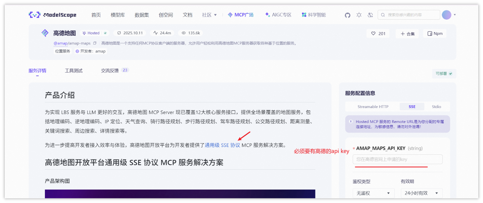 参考链接,来申请api key:https://lbs.amap.com/api/mcp-server/create-project-and-key