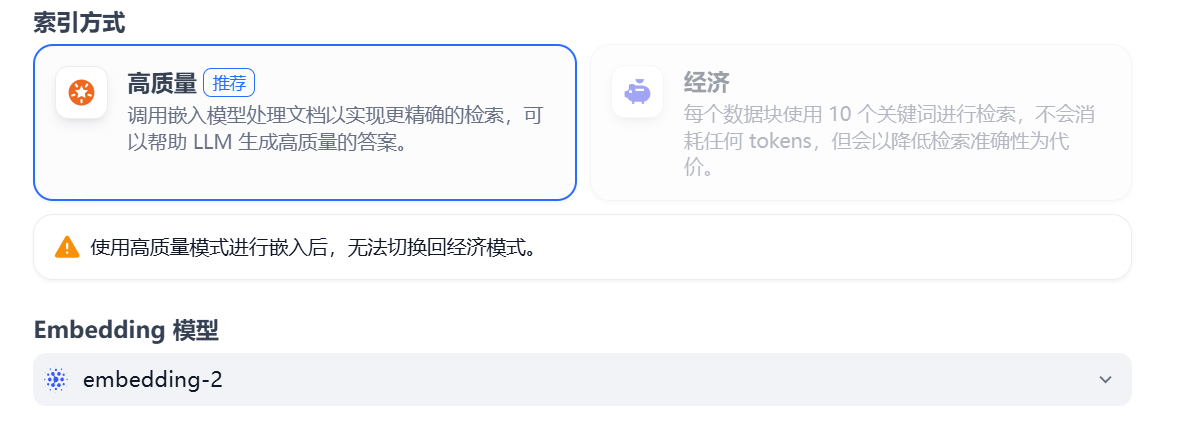 - Embedding 模型 :在知识库中,将分段过的文档做 Embedding 用的是该类型的模型。在使用了知识库的应用中,将用户的提问做 Embedding 处理也是用的该类型的模型。已支持的 Embedding 模型供应商:OpenAI、ZHIPU(ChatGLM)、Jina AI(Jina Embeddings)