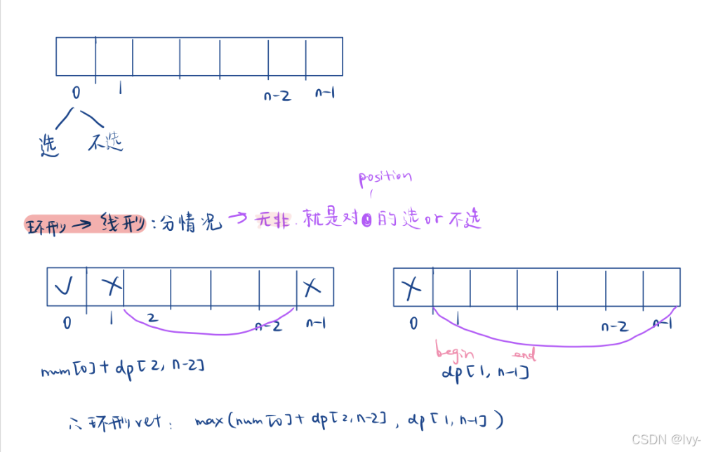 ++return max(nums[0]+solve(2,n-2),solve(1,n-1));++//nums[0]选 不选的预讨论