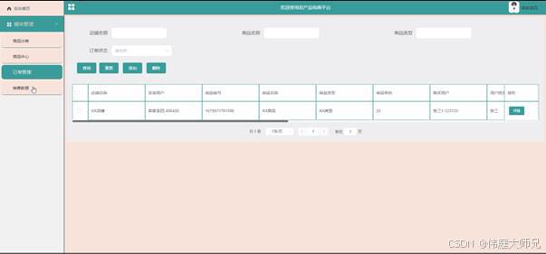 订单管理:商家用户可在此页面对用户的订单进行管理维护,也可根据需要进行删除、修改等操作,如图5-21所示。