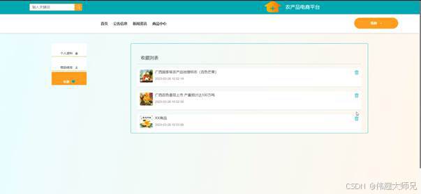 我的收藏管理:通过列表可以获取收藏名称、收藏图片等信息,进行详情、删除操作,如图5-5所示。
