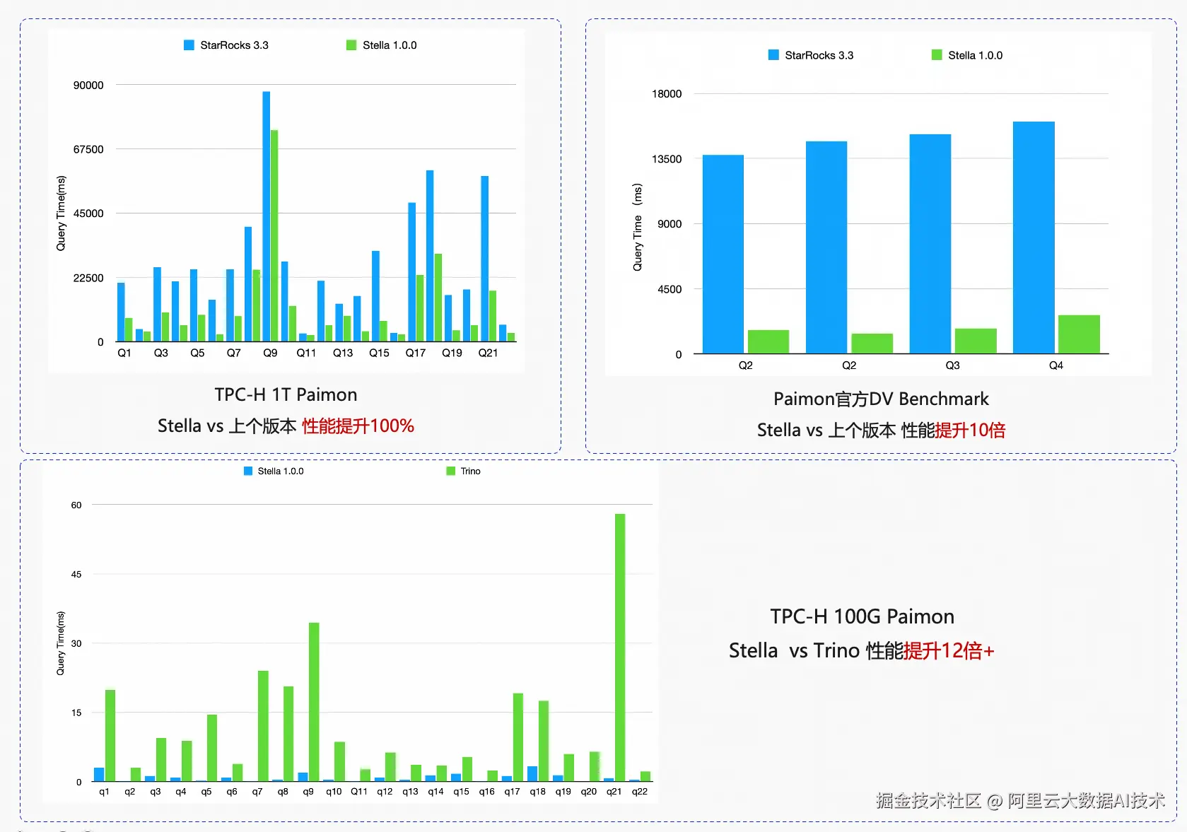 Stella在Lakehouse场景下查询Paimon下性能的提升非常明显: