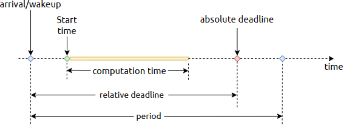 使用 sched_setattr 系统调用配置线程时,您可以指定三个参数:运行时(Runtime )、截止时间(Deadline )和周期(Period)。